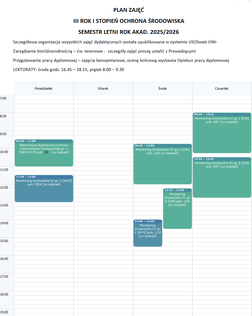 2026.02.10 – Plany zajęć na semestr letni 2025/2026